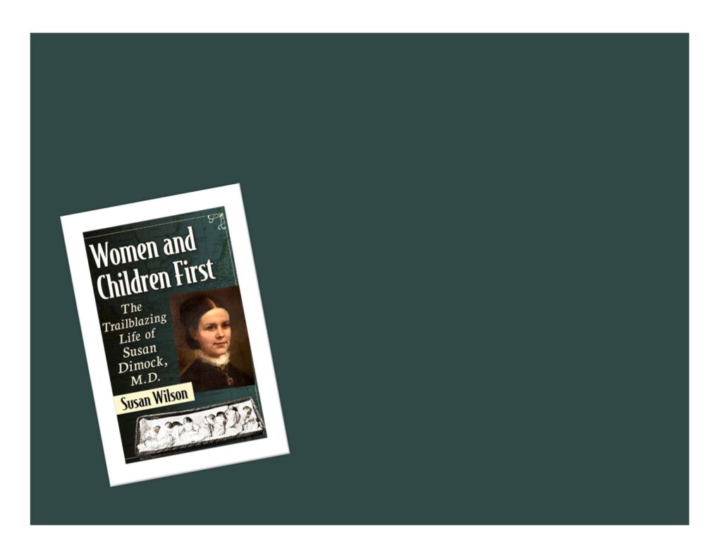 Susan Wilson is a professional photographer, writer, and public historian. She is the official House Historian of the Omni Parker House in Boston, an Affiliate Scholar at the Women’s Studies Research Center at Brandeis University, and an Honorary Fellow of the Massachusetts Historical Society. After receiving a B.A. and M.A. in history from Tufts University, Susan taught history at both the secondary school and college levels before moving into a career in journalism and photojournalism. Her writing and photography regularly appeared in the Boston Globe between 1978 and 1996. Since 1994 she has been writing books on Boston history, including Heaven, By Hotel Standards: The History of the Omni Parker House; Boston Sites and Insights; The Literary Trail of Greater Boston; and Garden of Memories: A Guide to Historic Forest Hills. Her brand-new book, Women and Children First: The Trailblazing Life of Susan Dimock, MD, is the subject of her presentation today.